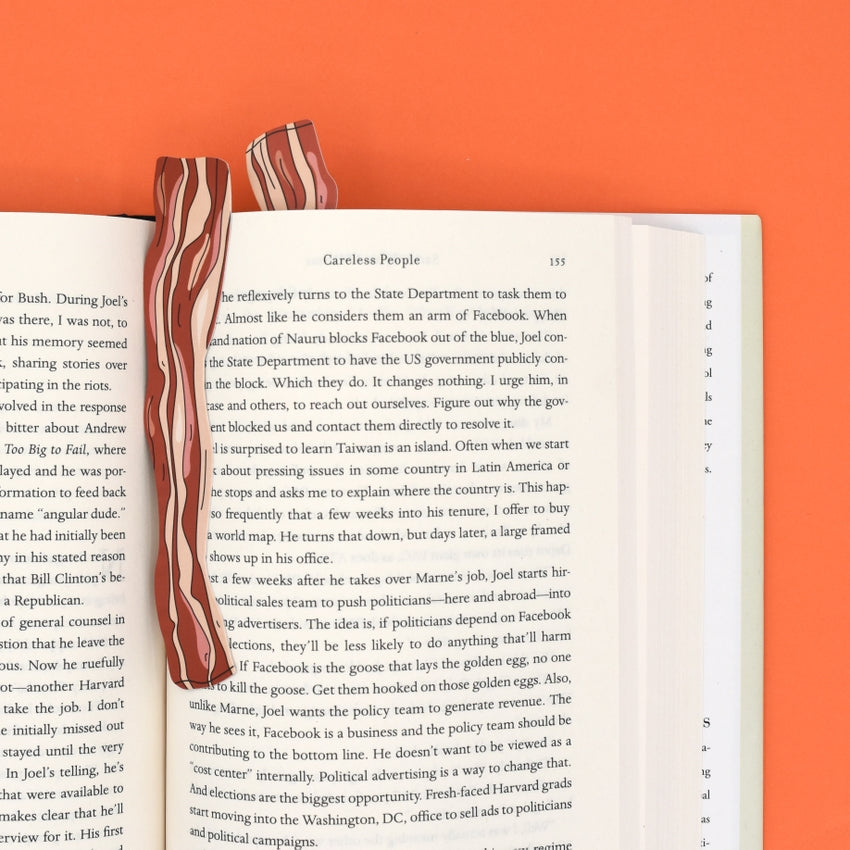 It's bacon in a book! One piece is not good enough. Two pieces are packaged together. Bookmarks are underrated... until you have multiple pieces of bacon sticking out of your novel.