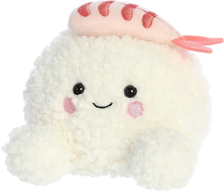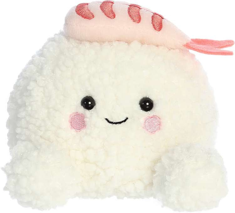 Ebi Shrimp Sushi is a charming plush with a textured, creamy body reminiscent of rice and a soft pink topping that captures the look of shrimp.