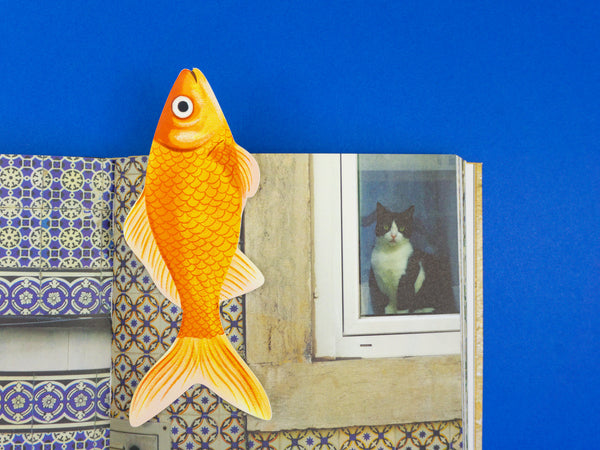 Swim into your next read with this Goldfish Bookmark! This quirky addition to your book collection brings a playful touch with its goldfish design. No more dog-eared pages, just colourful companionship! Like a real fish, it's easy to spot in any book!
