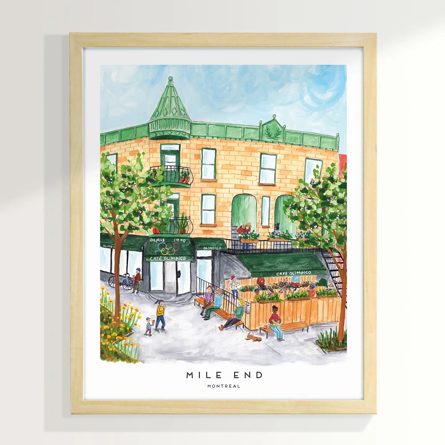 - Print of an original gouache painting of Montreal's Café Olimpico in Mile End